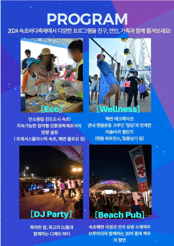 3. 공연: DJ와 함께하는 속초해변 EDM파티, 관객과 함께하는 복고댄스 등